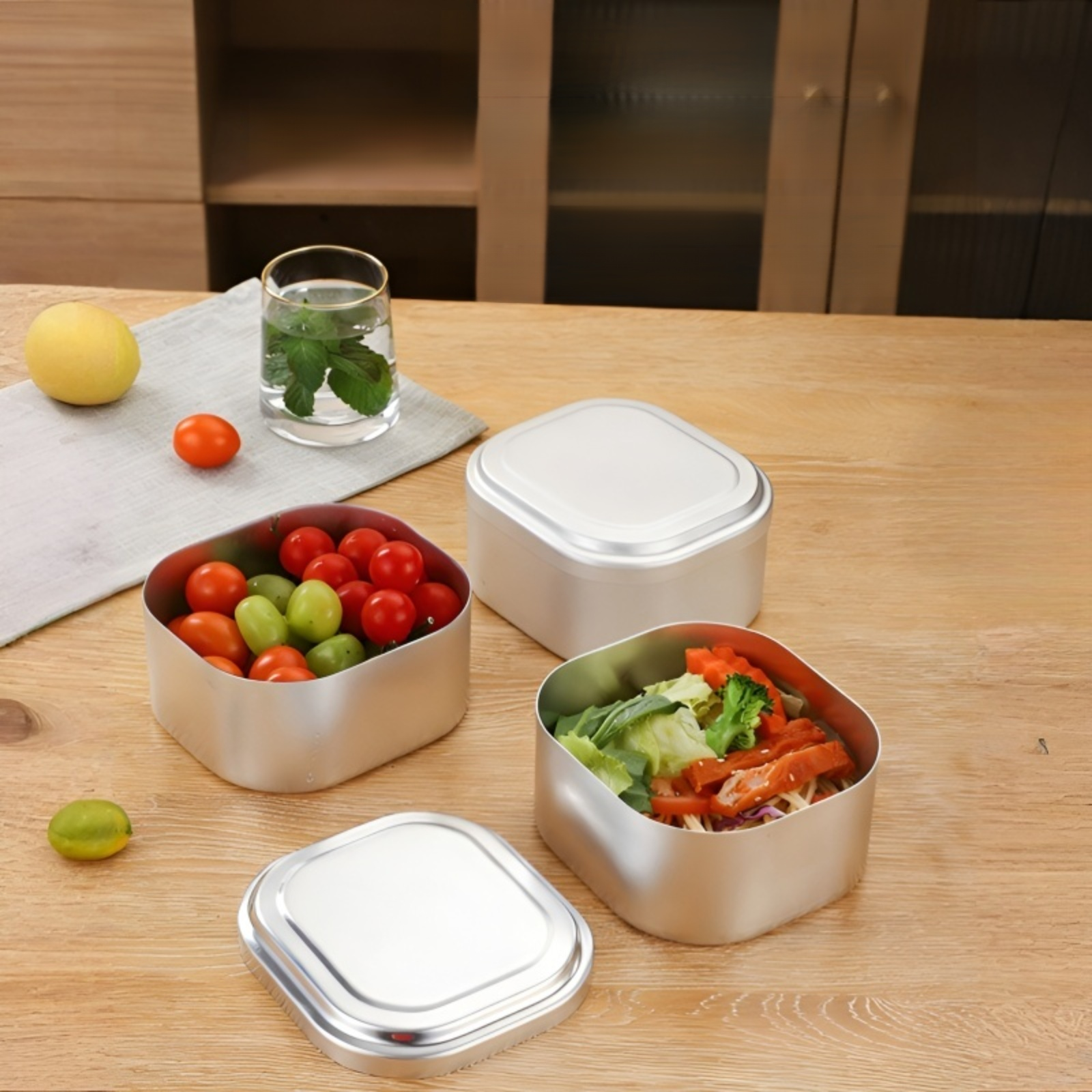 휴대용 올알루미늄 사각 도시락통, 손잡이 포함, 야외 피크닉 및 식품 보관에 적합
